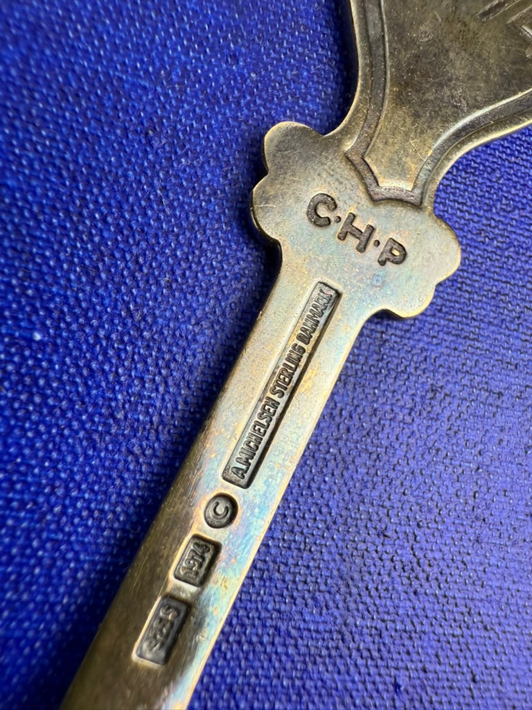 Łyżeczka ozdobna wykonana przez Antona Michelsena z 1974 wykonana ze srebra próby 925.